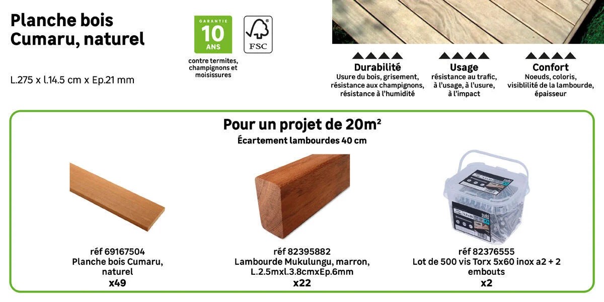 Leroy merlin et brico dépôt ont des prix plus intéressants que castorama pour les planches en sapin rabotées. Pour un suivi de chantier,. 300 x l.14.5 cm x ep.22 mm prix leroy merlin 30.40 € / unité. Centre materiaux 5 r ordronneau, 44400 rezé. Un grand choix de produits aux meilleurs prix. Nous voulons faire une terrasse rectangulaire en bois d'environ 4x5m et avons vu un produit qui nous conviendraient chez leroy merlin : Planche bois akola naturel : En quelques minutes, vous saurez . Terrasse en bois exotique leroy merlin](/images/cms/medium/c2b3a58d terrasse en bois exotique ©leroy merlin).